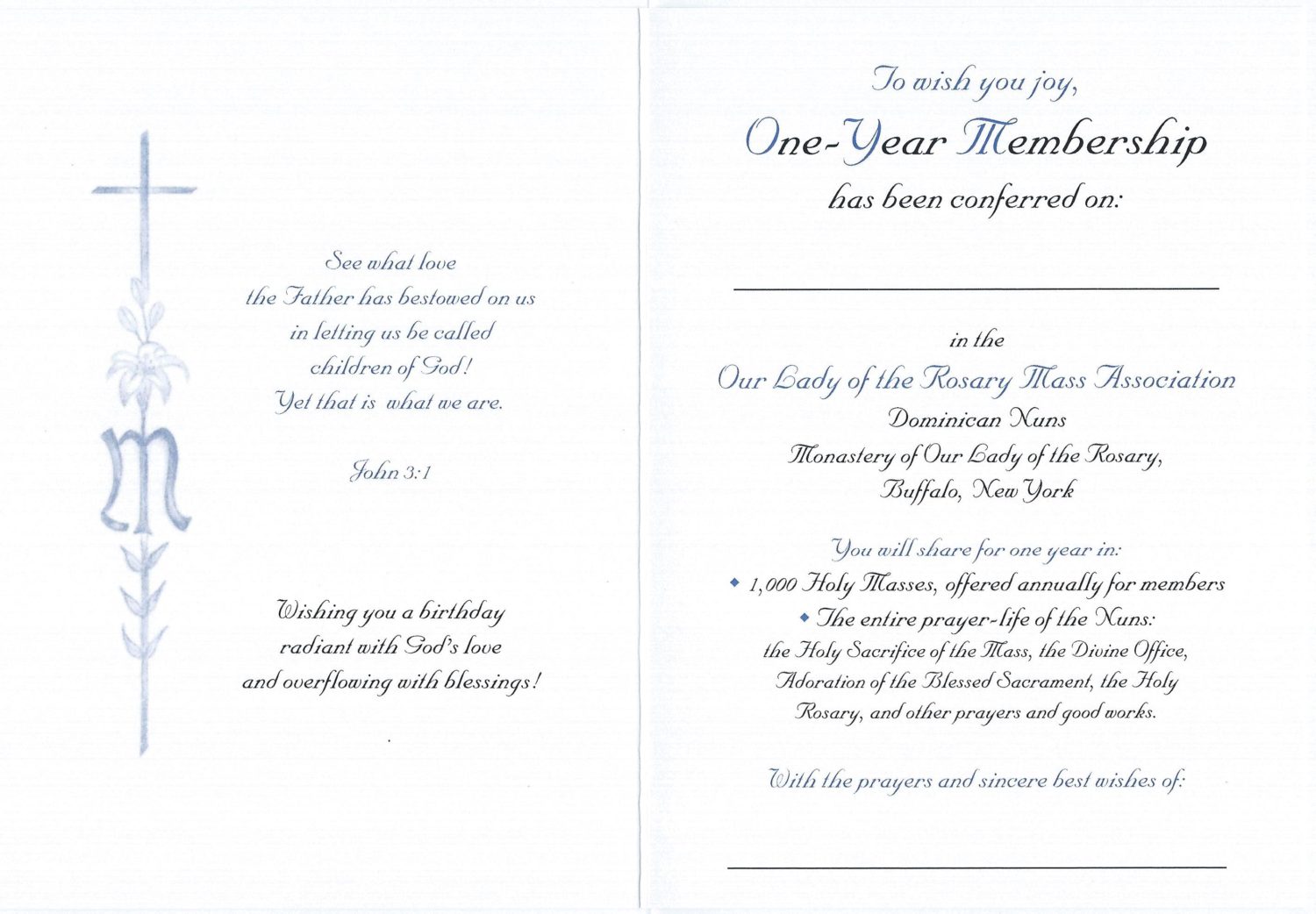 1000 Holy Masses offered annually for members,