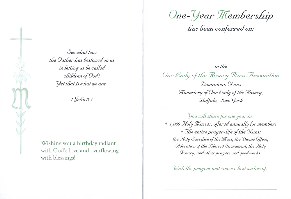 1000 Holy Masses offered annually for members,