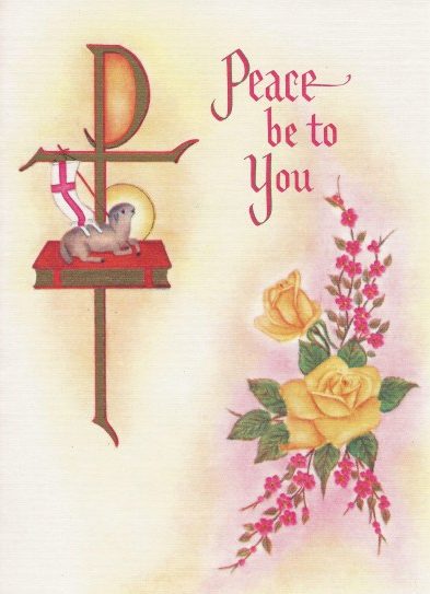 Artwork by the Nuns with gold embossed foiling. 5 x 7 card with insert.  Your personal message (optional) will be printed on vellum paper and enclosed in the card.  Shipped in double envelope.