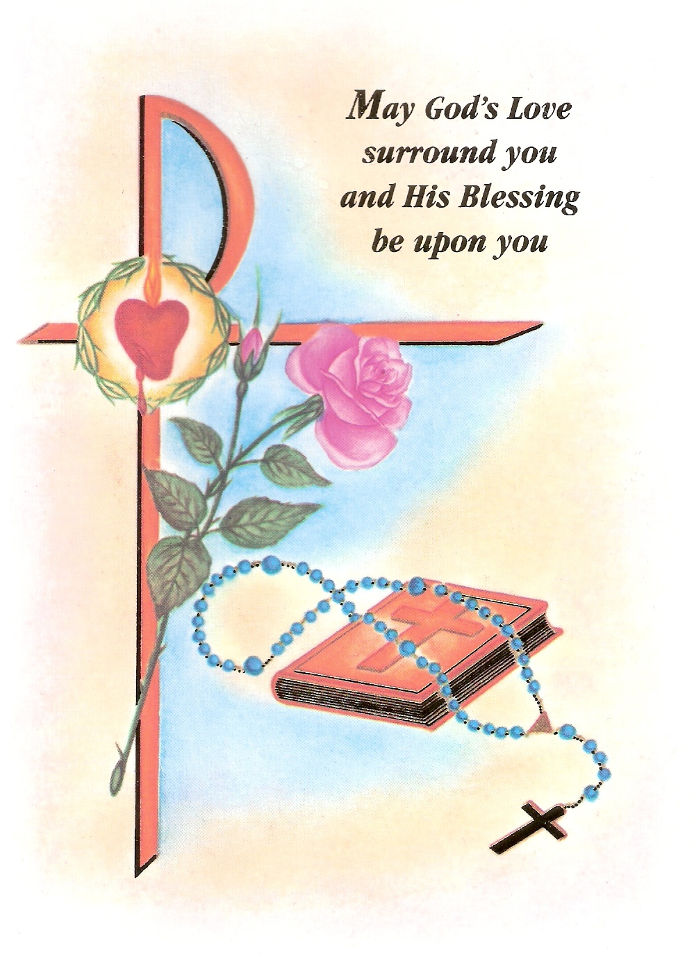 Artwork by the Nuns with gold embossed foiling. 5 x 7 card with card stock insert.  Your personal message (optional) will be printed on vellum paper and enclosed in the card.  Shipped in double envelope.
