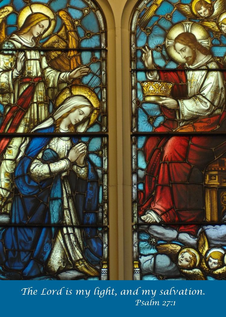 Stained glass window in the Monastery Chapel. 5 x 7 glossy card with card stock insert. Your personal message (optional) will be printed on vellum paper and enclosed in the card. Shipped in double envelope.